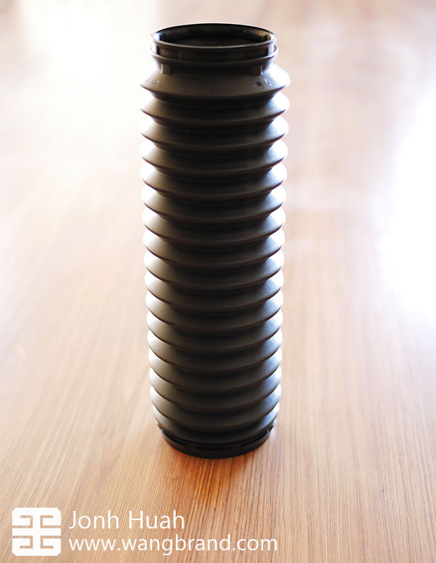 汽车避震器防尘套的制造对工艺有着极高门槛。首先,所使用的 TPE / TPEE 原材料具有极高的熔体指数 (MI),这使得控制 型胚 (Parison) 的厚度稳定性变得极其困难。其次,此类产品对本体每一褶皱部位的壁厚都有极低公差要求,任何细微的不均匀都会导致力学强度下降,无法通过汽车品牌的耐久性测试。此外,产品上下部位的自动除溢料以及高同步率的自动化生产也是客户在提升产能过程中遭遇的核心痛点。